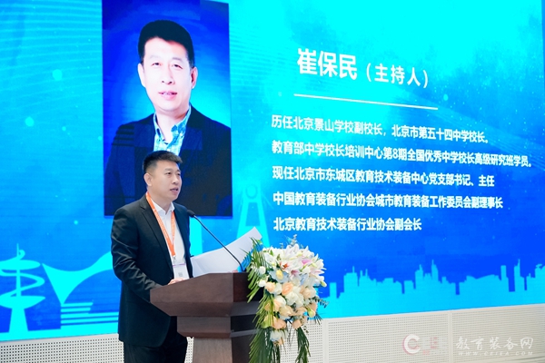 中國教育裝備行業(yè)協(xié)會城市裝備工作委員會理事長喬玉全主持會議