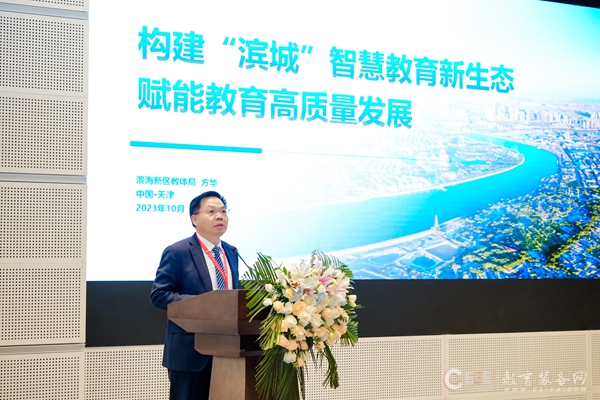 天津市濱海新區(qū)教體局書記、局長方華作關(guān)于《構(gòu)建“濱城”智慧教育體系 推動教育數(shù)字化轉(zhuǎn)型的探索與實踐》