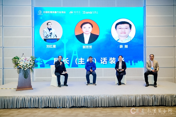 會議最后,山東濱州市教育局長、山西臨汾洪洞縣教育局長、長春市教育局局長共同參與局長話裝備沙龍環(huán)節(jié)。