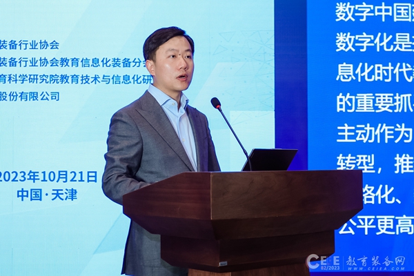2023年10月21下午,由中國教育裝備行業(yè)協(xié)會指導(dǎo),中國教育裝備行業(yè)協(xié)會教育信息化裝備分會主辦,天津市教育科學(xué)研究院教育技術(shù)與信息化研究中心、三盟科技股份有限公司共同協(xié)辦的AI賦能基礎(chǔ)教育數(shù)字化發(fā)展論壇在國家會展中心(天津)二層會議區(qū)32AB會議室舉辦。