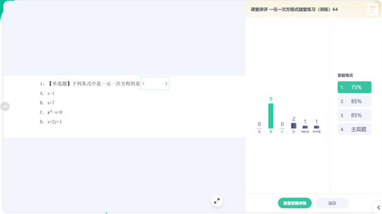 課堂上,老師在完成一個階段的知識點講授后,可以通過隨堂實時檢測的方式來了解全班同學(xué)的學(xué)習(xí)效果。