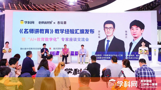 在展會(huì)上,學(xué)科網(wǎng)隆重發(fā)布《名師講教育》教學(xué)經(jīng)驗(yàn)匯編,并舉辦“AI+教育數(shù)字化”專家座談交流會(huì),邀請(qǐng)正高級(jí)教師、中國(guó)教育技術(shù)協(xié)會(huì)人工智能專業(yè)委員會(huì)常務(wù)理事羅化瑜,正高級(jí)教師、重慶市中小學(xué)信息技術(shù)名師工作室主持人張渝江現(xiàn)場(chǎng)共話未來(lái)教育。