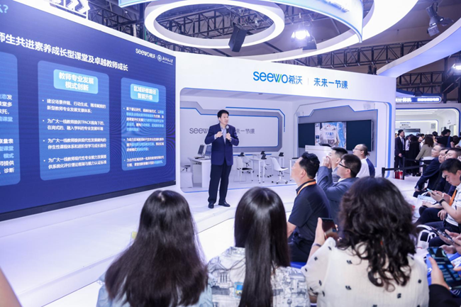 此前,教育部舉辦數(shù)字教育集成化、智能化、國(guó)際化專項(xiàng)行動(dòng)暨“擴(kuò)優(yōu)提質(zhì)年”啟動(dòng)儀式,發(fā)布4項(xiàng)行動(dòng)助推人工智能賦能教育。希沃積極響應(yīng)“人工智能+”政策趨勢(shì),結(jié)合算法、數(shù)據(jù)、應(yīng)用場(chǎng)景的積累,在此次教裝展上,攜旗下多款新一代數(shù)字化解決方案亮相。展示新技術(shù)在“教、學(xué)、研、管、評(píng)”中的創(chuàng)新應(yīng)用,與行業(yè)共同探索未來教育的無限可能。
