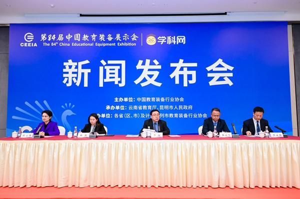 10月23日下午,本屆教裝展新聞發(fā)布會在昆明滇池國際會展中心召開。中國教育裝備行業(yè)協(xié)會秘書長李瀛,云南省教育廳教學儀器裝備中心主任楊志軍,昆明市商務局副局長陳莉,昆明滇池國際會展中心有限公司黨委書記、董事長葉云翔出席發(fā)布會介紹有關情況并回答記者提問。會議由云南省電化教育館館長普孟韜主持。