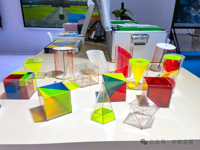 立體幾何模型、模塊化幾何模型搭建套裝、三維重力博弈棋盤(pán)等動(dòng)手操作的數(shù)學(xué)學(xué)具,也吸引了眾多參觀客戶(hù)的關(guān)注。