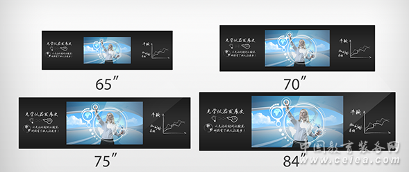 三、產(chǎn)品優(yōu)勢(shì) 粉筆書(shū)寫,防水防暴: 可以用粉筆直接書(shū)寫、擦除、清洗筆跡;自動(dòng)感應(yīng)識(shí)別,表面大量積水仍可正常觸控;防眩鋼化玻璃,防暴、防刮擦、抗擊打;圓角設(shè)計(jì),對(duì)學(xué)生細(xì)致入微的安全防護(hù); 視聽(tīng)結(jié)合,智慧教學(xué): 支持視頻、音樂(lè)、圖片、PPT等各類多媒體教學(xué)軟件;Windows操作系統(tǒng),傳統(tǒng)界面,簡(jiǎn)單易懂;專業(yè)教學(xué)軟件,滿足教學(xué)所需; 防眩技術(shù),綠色護(hù)眼: 高光過(guò)濾技術(shù),有效過(guò)濾80%有害光,保護(hù)視力;防眩光技術(shù),對(duì)光線漫反射處理,防止反光;178°可視角度,不影響外側(cè)兩排學(xué)生觀看; 純平外觀: 純平表面無(wú)邊框,灰塵不影響觸控;信號(hào)拼接轉(zhuǎn)換功能,單屏、雙屏自由組合;時(shí)尚、科技,與現(xiàn)代化教學(xué)場(chǎng)景融為一體; 觸顯一體,多人互動(dòng): 20點(diǎn)電容靈敏觸控,滿足多人同時(shí)互動(dòng);全高清4K液晶顯示,LED節(jié)能背光,畫面清晰、細(xì)節(jié)突出;高配工控主機(jī),無(wú)線上網(wǎng),USB存儲(chǔ); 尺寸多元,多場(chǎng)景適用: 84寸,超大尺寸顯示屏,適合高職、大學(xué)等階梯教室使用;75寸,比普通黑板略大,適合初高中較大室內(nèi)空間使用; 70寸/65寸,和普通黑板大小相同,適合幼兒園或者空間較小的教室使用 |