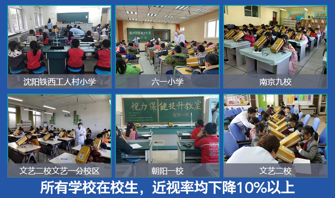 學生近視防控教室,是永康視光科技集團在多項重大發(fā)明基礎上的集成創(chuàng)新。學校拿出一間教室,放置30-50臺永康視力提升機,學生按班級建制每周進行一次20-40分鐘的訓練,一般經(jīng)過1-2個月5-10次訓練,會達到裸眼視力平均提升2行,近視率平均下降10%以上的良好效果。2018年11月、12月以及2019年1月,永康集團在沈陽市工人村第一小學、文藝二校教育集團文藝一校、朝陽一校、六一小學、南京九校等5所學校先后建立了學生近視防控教室,取得了良好效果。目前,北京市海淀區(qū)、西城區(qū)、遼寧省大連市、內(nèi)蒙古烏蘭浩特市等地區(qū),都在與永康視光集團合作,開展學生近視防控教室試點工作,并逐步在當?shù)厝嫱茝V。