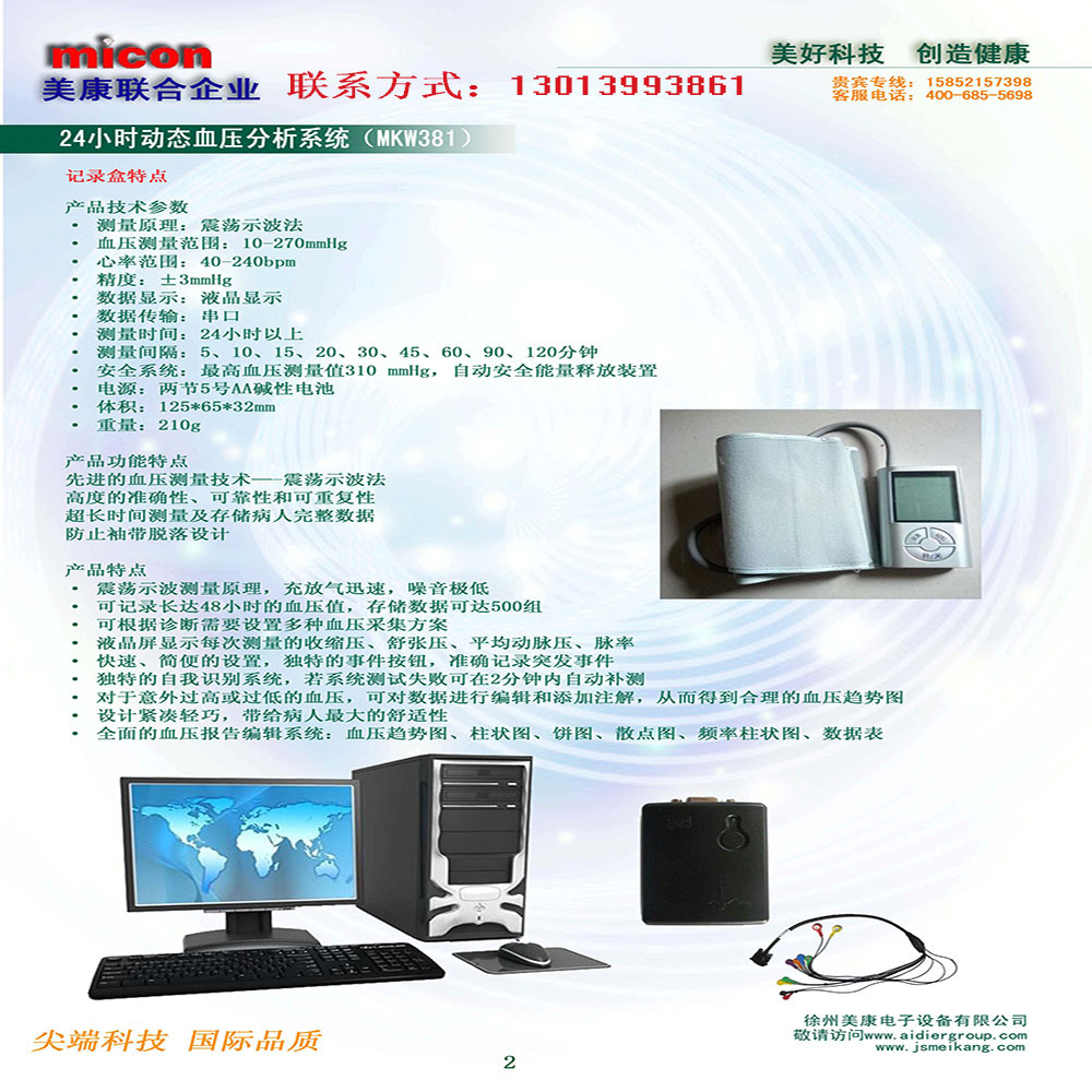 產(chǎn)品詳細(xì)介紹24小時(shí)動(dòng)態(tài)血壓分析系統(tǒng)(MKW381) 記錄盒特點(diǎn) 產(chǎn)品技術(shù)參數(shù) 測(cè)量原理:震蕩示波法 血壓測(cè)量范圍:10-270mmHg 心率范圍:40-240bpm 數(shù)據(jù)顯示:液晶顯示 數(shù)據(jù)傳輸:串口 測(cè)量時(shí)間:24小時(shí)以上 測(cè)量間隔:5、10、15、20、30、45、60、90、120分鐘 安全系統(tǒng):最高血壓測(cè)量值310 mmHg,自動(dòng)安全能量釋放裝置 電源:兩節(jié)5號(hào)AA堿性電池 體積:125*65*32mm 重量:210g |