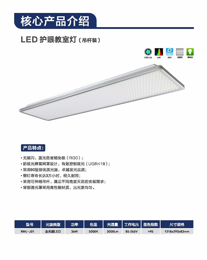 LED護(hù)眼教室燈(吊桿款)產(chǎn)品特點(diǎn):