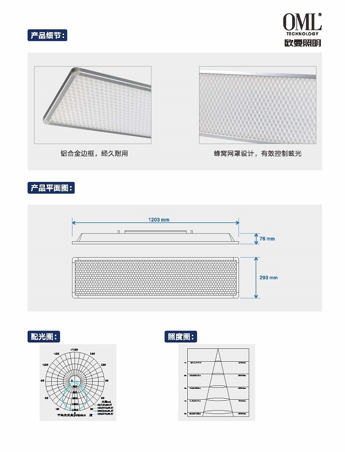防眩光蜂窩網(wǎng)罩設(shè)計(jì),有效控制眩光(UGR<19);