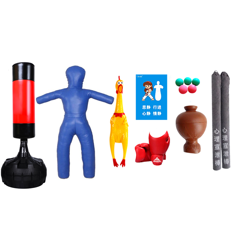 產(chǎn)品詳細介紹宣泄柱1個+摔跤宣泄人1個+慘叫雞1個+宣泄手套2副+吶喊壺1個+宣泄棒2根+宣泄掛圖2張+摔打宣泄球4個 三、設備詳情 (1)宣泄柱:產(chǎn)品材質(zhì)為pu材質(zhì),尺寸為:175cm,圓形底座設計,底座可注沙或注水; (2)摔跤宣泄人:多層優(yōu)質(zhì)加厚皮革料,高:160cm,寬:80cm,手臂伸出:25cm,頭部高度25cm,重量40kg,紅色配黑邊, (2)宣泄手套:優(yōu)質(zhì)PU革,內(nèi)部壓縮海綿一次成型,有很好的透氣性。(可有效的緩沖打擊時的撞擊,采用了輕型耐用材料); (3)慘叫雞:材質(zhì):搪膠;規(guī)格:9*42cm;使用:擠壓雞的肚子會發(fā)出叫聲; (4)吶喊壺:尺寸:整體高度為18.5cm,最大直徑13cm,ABS材質(zhì),凈重210g,頸部部分可以讓手恰好牢牢抓住,瓶口的弧度剛好適合嘴型,瓶身的弧度造型也能起到隔音效果。傳出的聲音僅為原來的1/3。 (5)宣泄棒:安全環(huán)保,外套絨布印有“心理宣泄棒”字樣,手感極佳,長75CM。 (6)宣泄掛圖:高清環(huán)保相紙,顏色清晰,永不退色。尺寸為40cm*60cm (7)摔打宣泄球:采用高檔加厚pvc材質(zhì),圓形球體加“羊角”形手柄設計,方便抓握;內(nèi)部充氣設計,不傷手 |