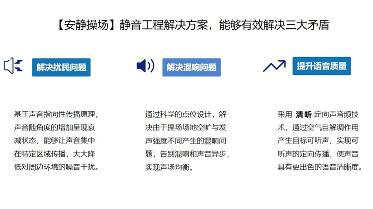 “低、中、高”語音發(fā)聲角度靈活調(diào)控,解決串音擾課問題,提高操場使用率。