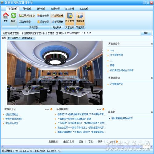 界面設(shè)置:提供平臺(tái)橫幅、膚色、圖片、欄目、公告、信息、座右銘等個(gè)性化設(shè)置的功能,以支持具有院校風(fēng)采特色的實(shí)驗(yàn)室門戶界面的創(chuàng)建和展示。