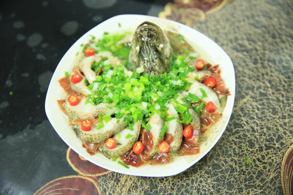 制作方法:鱸魚洗干凈,先將魚頭切下;剪掉魚鰭,從頭部開始,用刀從魚背往魚腹切到魚尾處,切忌不可切斷;將鹽和料酒制作成的混合物抹遍魚全身,腌制15分鐘備用;生姜、蔥切絲,墊在盤子底部,將腌好的魚擺出孔雀開屏的造型,魚頭放在最前面,尾巴部分也可單獨(dú)切下來(lái),放在魚頭下方;擺好造型后,在每一塊魚肉中間夾入一小片火腿,再在魚上鋪一層姜蔥絲,冷水入鍋,大火蒸10分鐘即可出鍋;出鍋后,去掉上面的姜蔥絲,淋上一點(diǎn)生抽,再放上適量蔥末;鍋內(nèi)倒油,燒熱后淋到魚上,再放上若干紅辣椒裝飾即可。