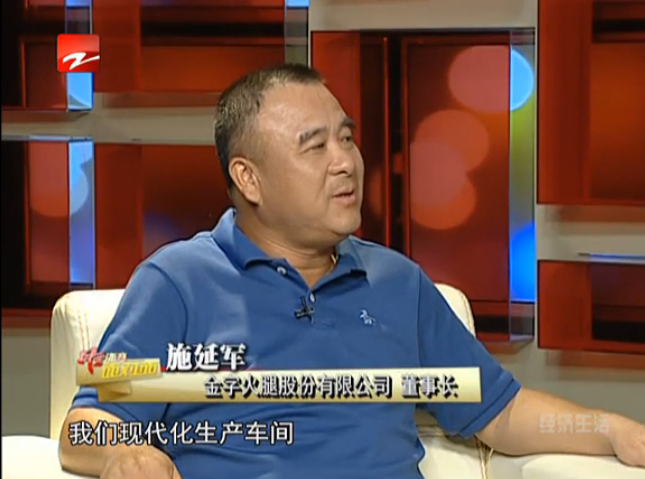 8月23日播出的《風云浙商面對面》收視率迎來一個新高,這期節(jié)目邀請到了一位特殊的嘉賓——金字火腿股份有限公司董事長施延軍。如何將“浙江三寶“之一的金華火腿產業(yè)做到上市,為何能在風靡中國的《舌尖上的中國》紀錄片中亮相,怎樣將火腿這一產業(yè)做到與歐洲一樣?施延軍董事長在節(jié)目進行中向觀眾逐一解答,并首次在電視媒體上回顧了金字20多年的發(fā)展歷程。
