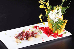 假如火腿有靈性,相信最愿意落在一位能將它千變?nèi)f化的大廚手中。就像我們一樣,在遇到真正的高手時(shí),也總難掩興奮和激動(dòng)。?華小富,一位從16歲就開始做廚師,至今已經(jīng)有了十幾年從業(yè)經(jīng)驗(yàn)。打通我們報(bào)名電話時(shí),他說的第一句話是:“讓我們指點(diǎn)你們一下,怎么做好火腿菜。”那種隔著電話就能清晰感受到的自信。? 不過親眼見到了,才知道這種自信的確有道理:從冷菜到熱菜,從主食到甜品……