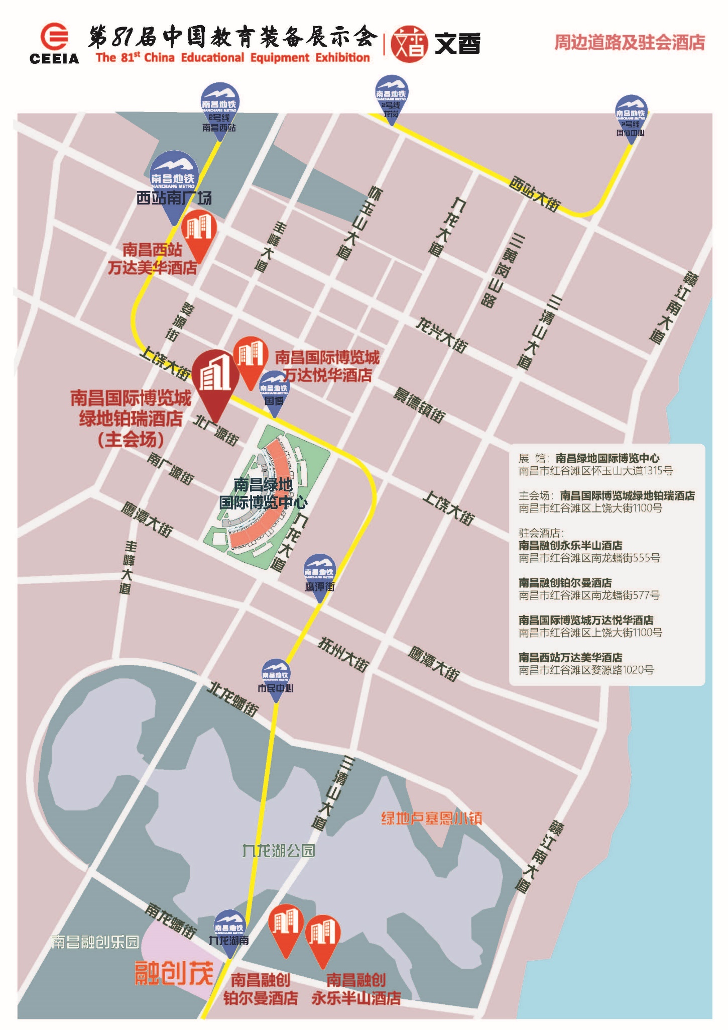 3.報到地點:組團(tuán)單位、參展商均到南昌國際博覽城綠地鉑瑞酒店報到,交通示意圖見附件2。
