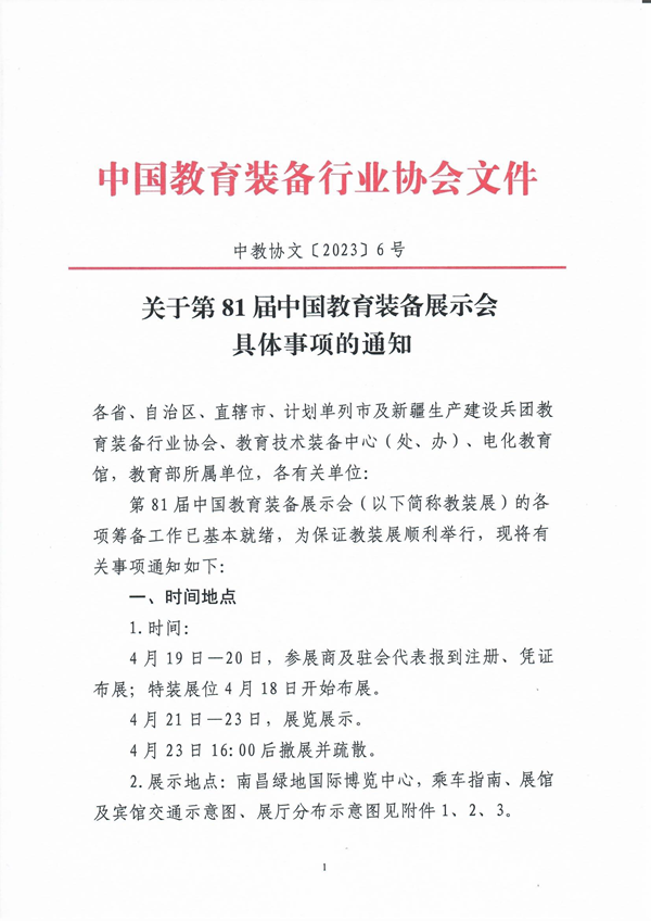 第81屆中國教育裝備展示會(以下簡稱教裝展)的各項籌備工作已基本就緒,為保證教裝展順利舉行,現(xiàn)將有關(guān)事項通知如下: